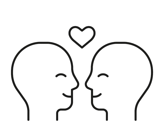 カップルの人々 は、愛の心の線のアイコンとプロファイルを頭します。関係。見つめ合う二人の恋人Premiumベクトル素材。