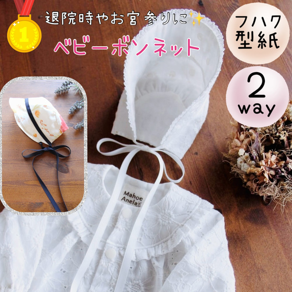 ベビー 型紙 赤ちゃん 帽子 新生児 退院 宮参り2way ベビーボンネットA3印刷型紙DL仕様書付き型紙 MahoeAnela通販 13347369Creema クリーマ。
