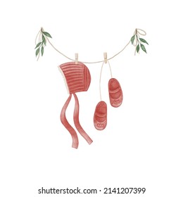 緑の葉の装飾と物件上の赤ちゃんの服の水色イラスト。手描きのベビーボンネットとブーティ。グリーティングカード、ベビー シャワーの招待状、ソーシャルメディア投稿のクリップアート」のイラスト素材 2141207399Shutterstock。