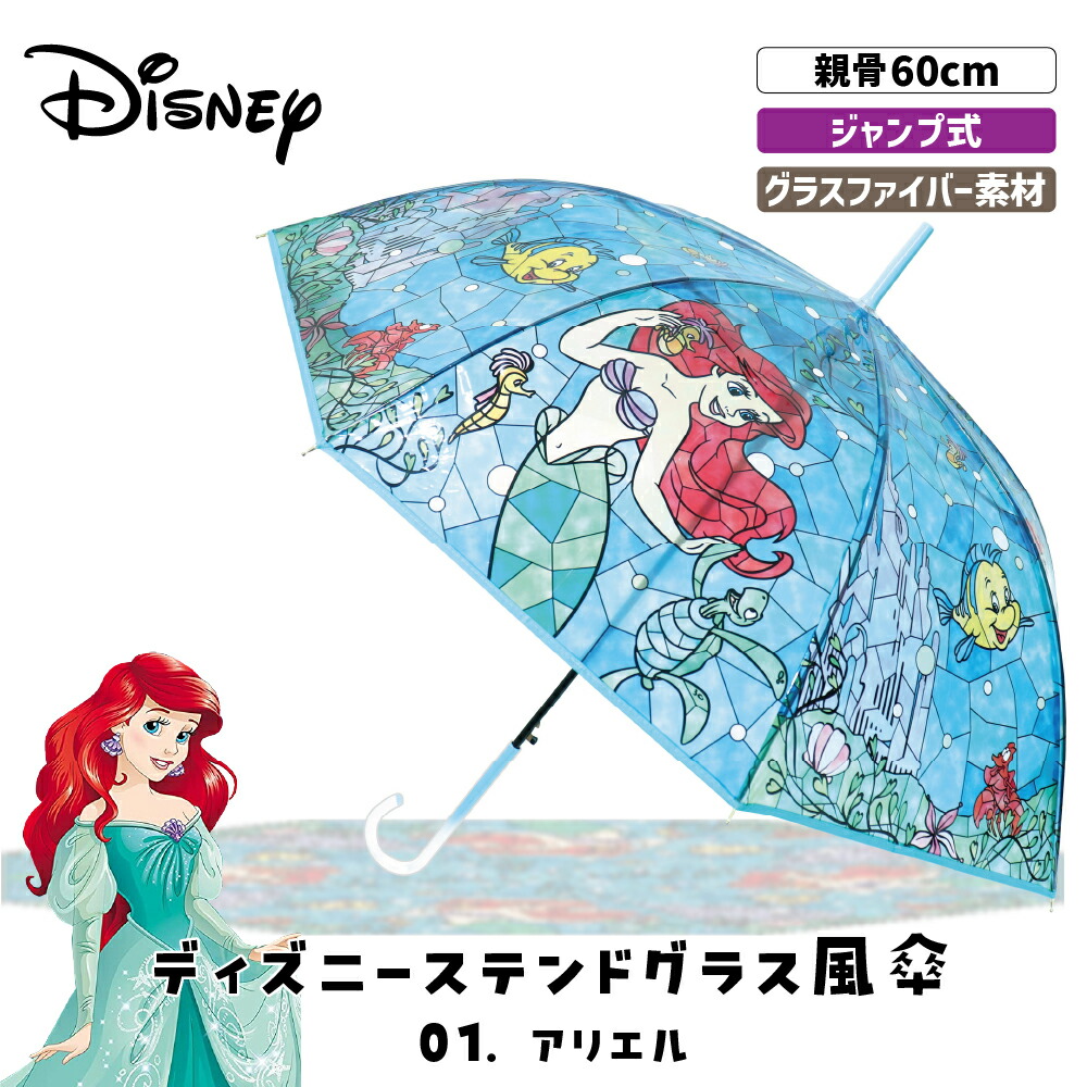 楽天市場クーポンで10%OFF傘 大人 子供 レディース 女性 女の子 ステンドグラス ディズニー プリンセス アナ雪 アリエル ベル アリエルビニール傘 ワンタッチ 小学校 通学 通勤 8本骨 ディズニープリンセス 雨傘 グラスファイバー 丈夫 軽量 クリア おしゃれ。