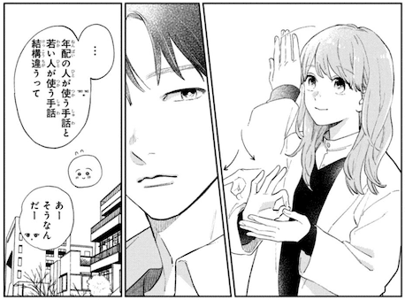 ゆびさきと恋々手話アニメの速さに驚く逸臣!雪の手話の世界Sign.10_1。