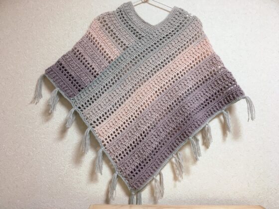 ダイソーの糸で編むミニポンチョの作り方。