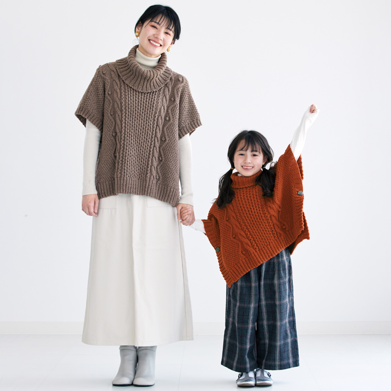 楽天市場編み図 オフタートルの親子ポンチョ・キッズY-3W-1617やわらかラム使用 : アベイル・コマドリ 生地・毛糸。