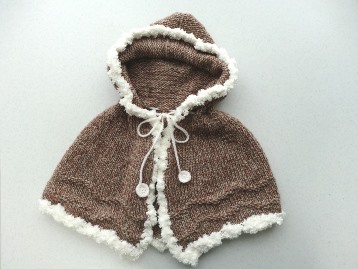 手編みフード付ポンチョ 棒針編み図 ガーター編みのフードつきケープ Sサイズ– 手編み。