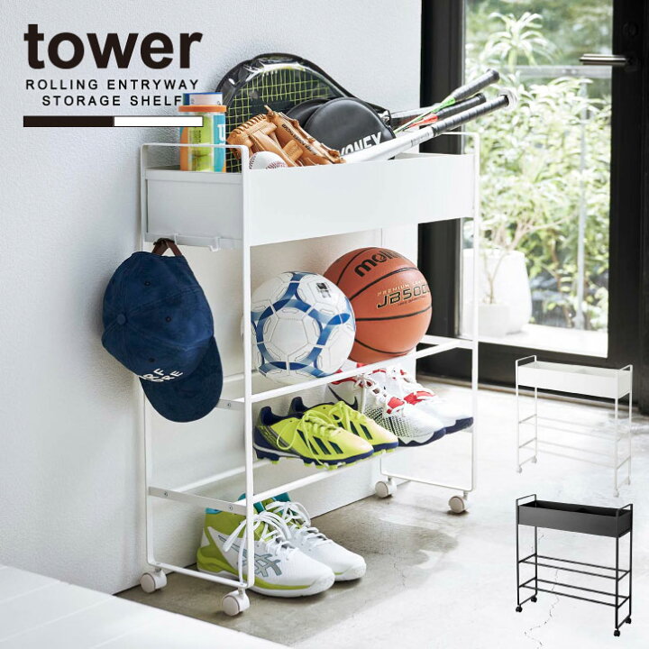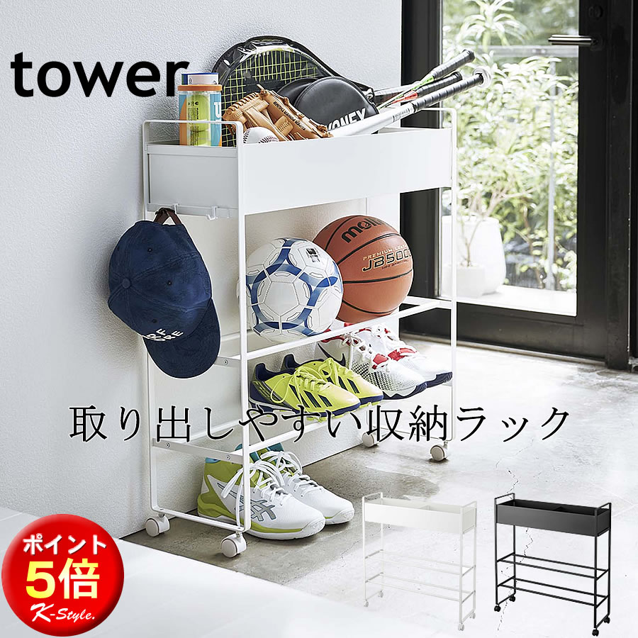 タワー tower 山崎実業キャスター付き 玄関収納ラック 「送料無料」玄関 収納 ワゴン キャスター付き 外遊び おもちゃ ボール。