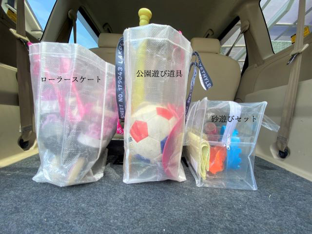 外遊びのおもちゃ収納お母さんは右半身麻痺。