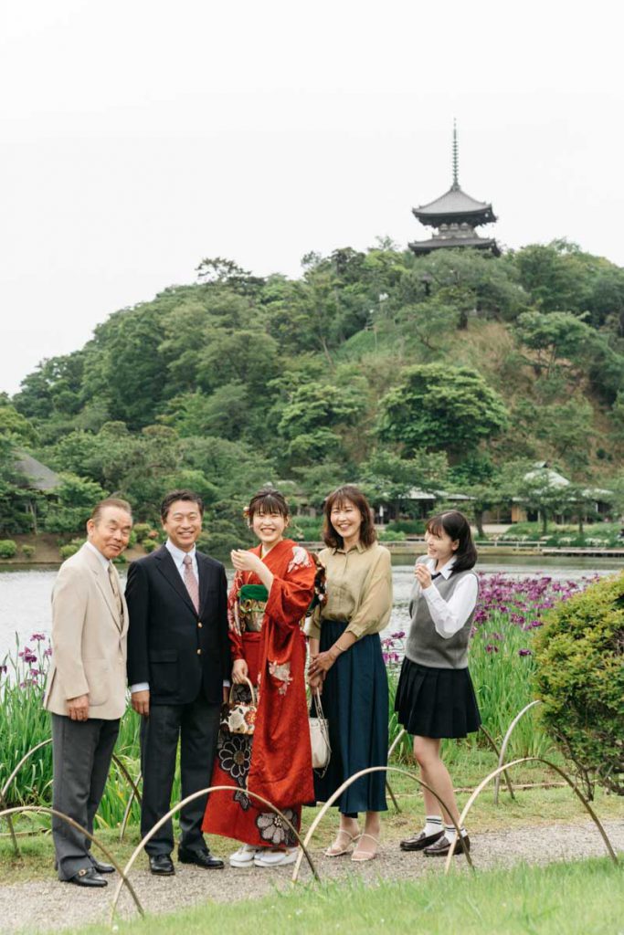 和装前撮りの写真 新緑の三渓園。フォトスタジオ ワンライフ。