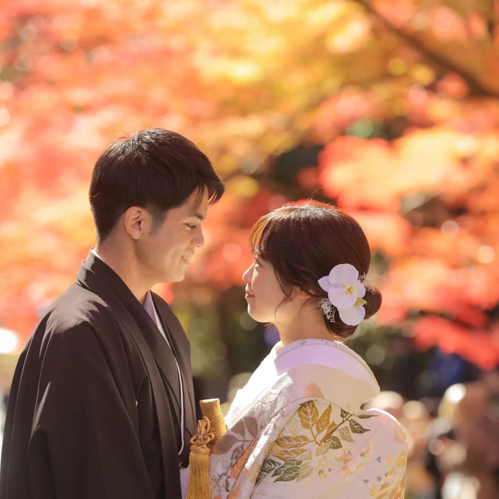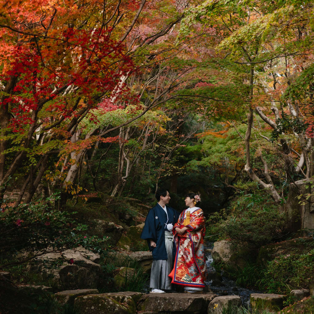 三景園での前撮り 色とりどりの紅葉とともに 💛🧡❤ -----------------------フォレストヒルズガーデン 住 所広島県三原市本郷上北方1361 お 電 話 0848-60-8191ブライダル直通営業時間 10:00-17:30 定 休 日 火曜日・水曜日祝日の。