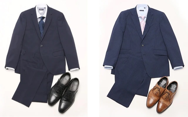 スーツに合わせるおしゃれな靴とコーデ40例 ネイビースーツ・グレースーツと黒茶靴比較ビジネス・オフィス・スマートカジュアル専門通販。