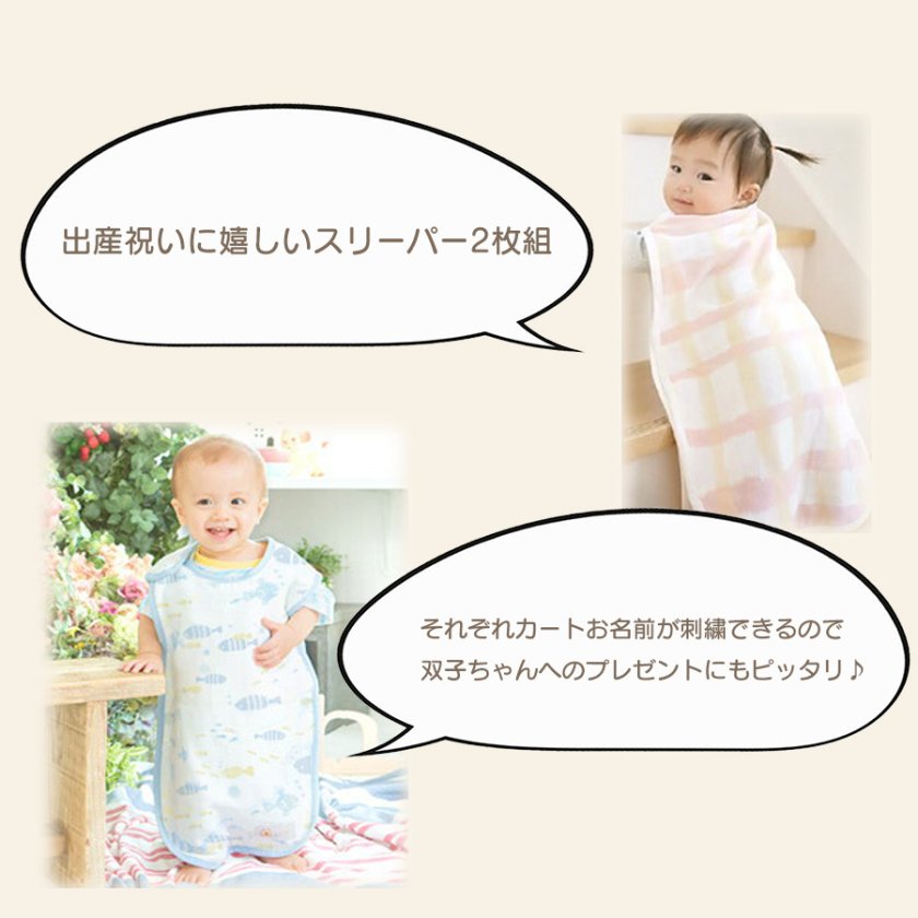 でんち 双子ちゃん女の子 一歳から二歳 お祝い着 出産祝い 名入れ ギフトセット スリーパー 双子 男の子 女の子 名前 刺繍入り 2枚ラッピング・カード 日本製 綿 Honey&Mum -Honey & Mum - プレゼント&ギフトのギフトモール。