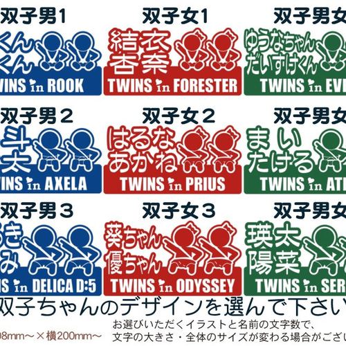 名入れ 双子のお名前と車名入り BABYINCAR TWINSINCAR ベビーインカー ステッカー 色選べる 322 雑貨・その他 moji 通販7763317Creema クリーマ。