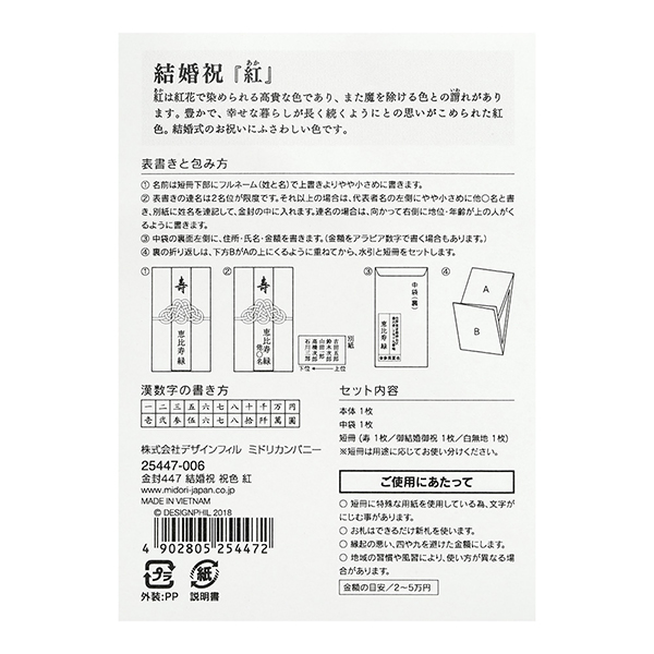 楽天市場 ご祝儀袋 結婚祝 金封445 祝色 白 25445006 1枚入 中袋付 表書きと包み方解説付 短冊 寿 エンボス加工 、御結婚 御祝、無地:各1枚 金額目安:2万~5万円 御祝儀袋 MIDORI ミドリ : べるえぽ。