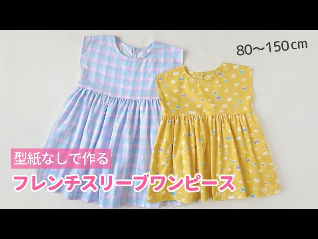 型紙なしで作れる 子供のフリルそでワンピースの作り方 80~130㎝えりぐりゴムで着脱簡単。