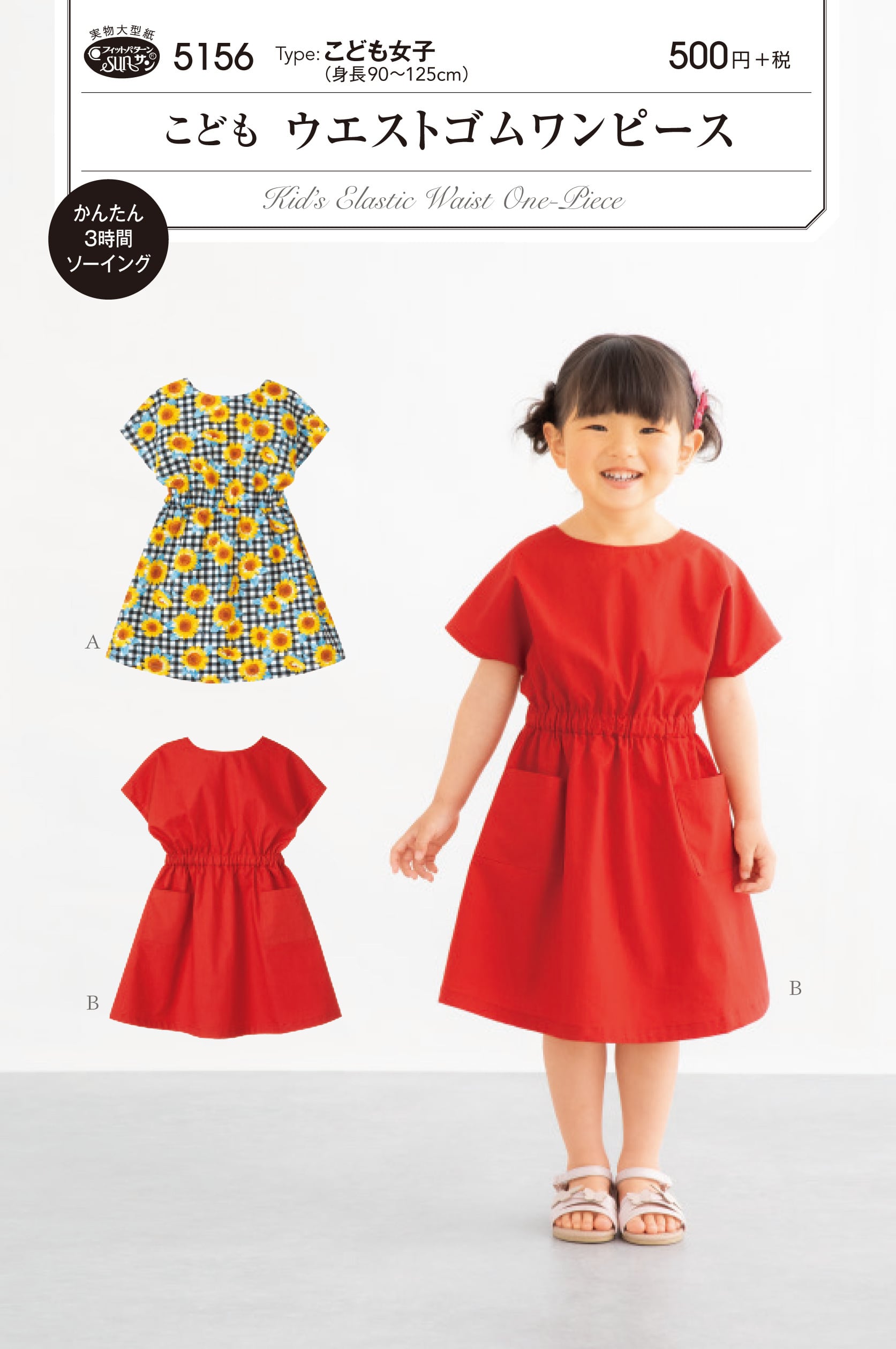 こどもウエストゴムワンピース 5156型紙、パターン専門ショップ アールパターン。