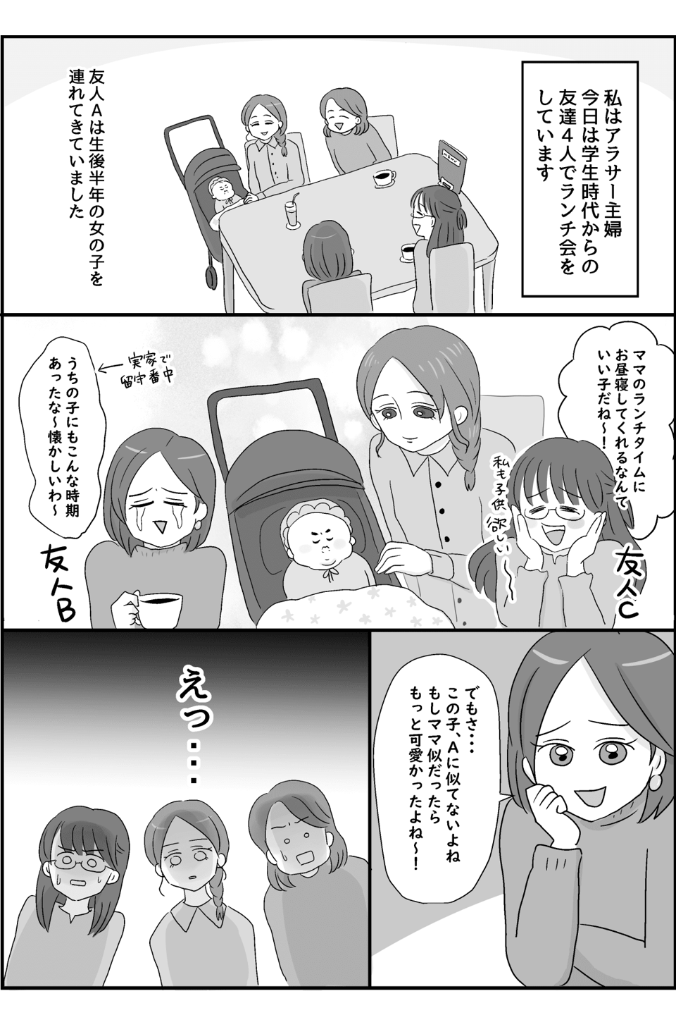 前編 「ママは美人なのに赤ちゃん似てないね」悪気なく傷つけてくる友人。どんなフォローをすべき? ママスタ。