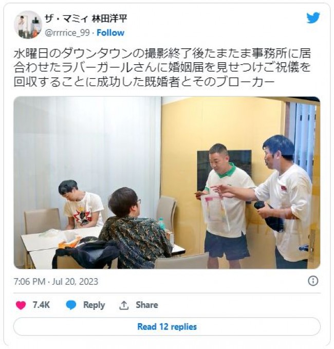 ザ・マミィ 林田洋平 on X: "上田さんと咲子さんの結婚式、とても素晴らしくてずっと忘れない大切な思い出になりました。誓いのキスの前に上田さんがこっち見てきたのだけまじ謎だった!!! https:t.co IAXPORtOSb"X。