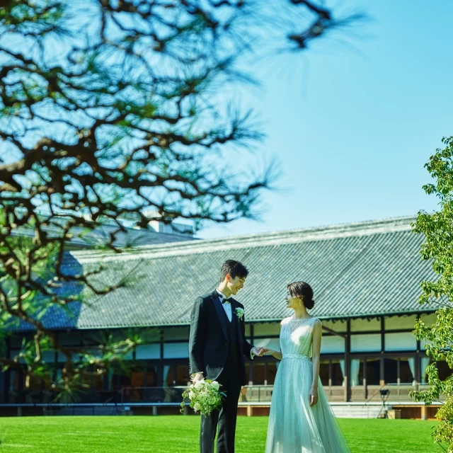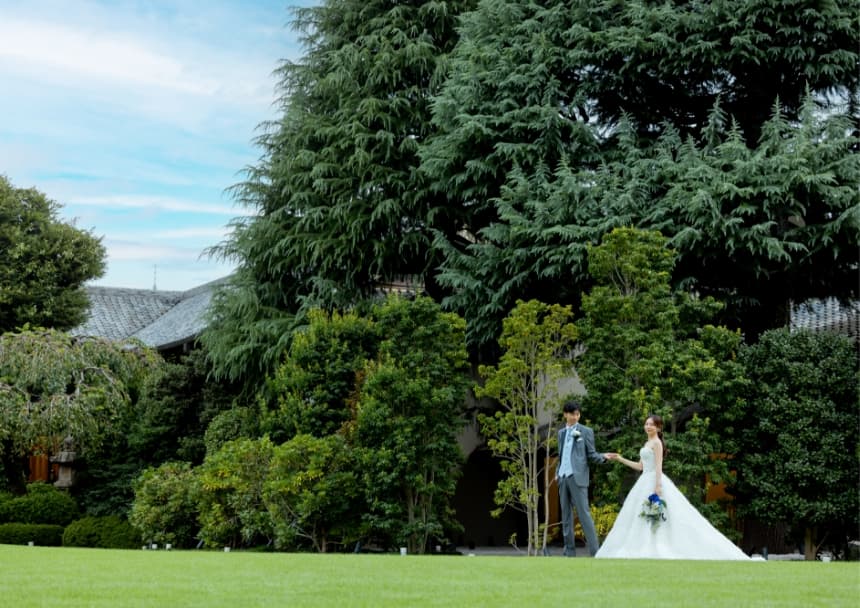 明治記念館の美しい風景をバッグに記念写真♡期間限定のフォトウエディングプランが新登場。