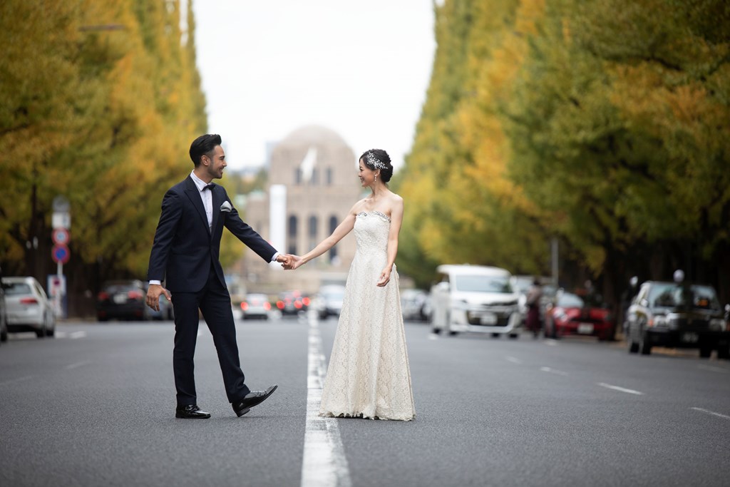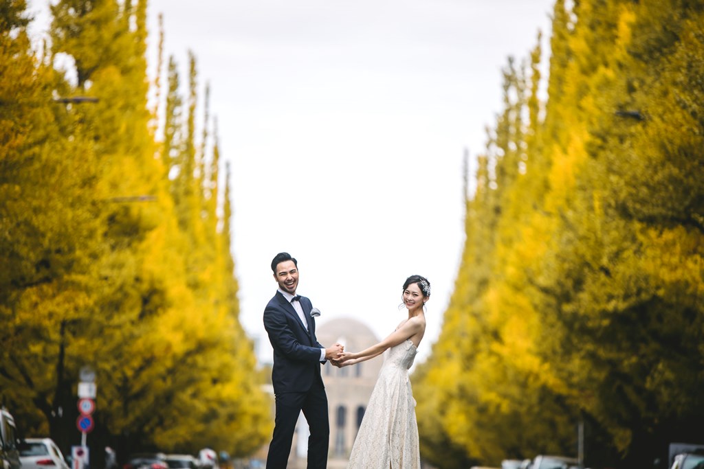 外苑前いちょう並木前撮りロケーション・フォトウェディングは東京のウェディングアベニュー表参道南青山店。