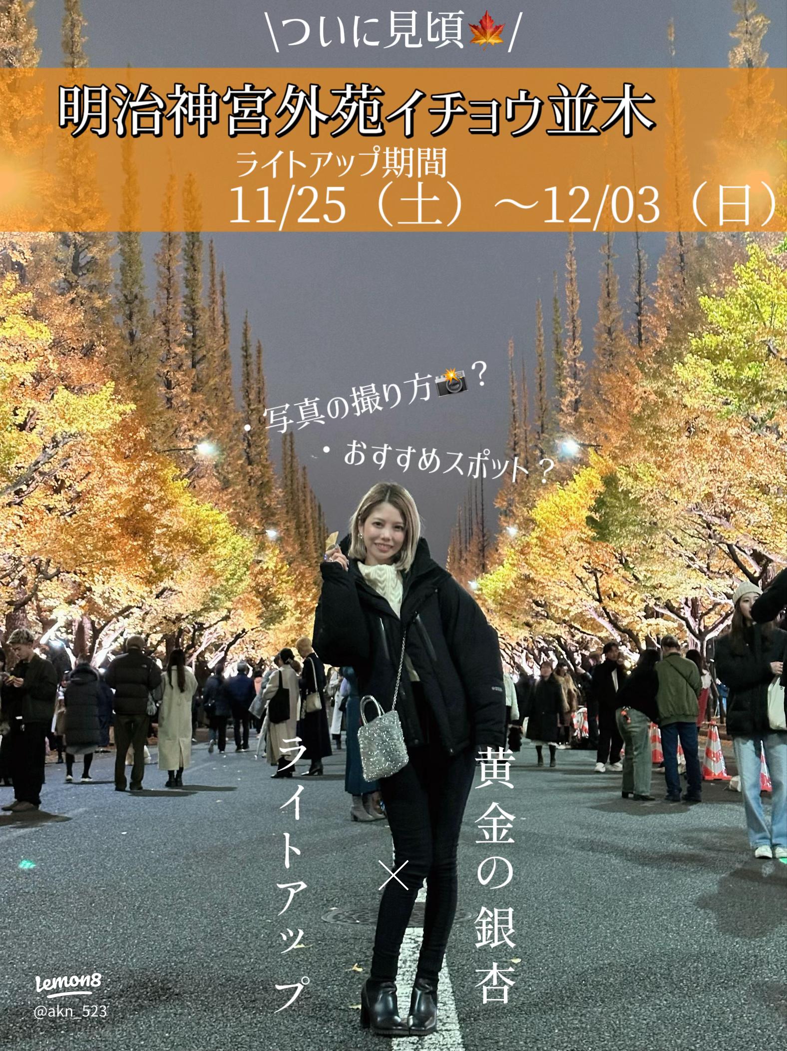 明治神宮外苑いちょう並木のライトアップ情報と写真スポットガイド。