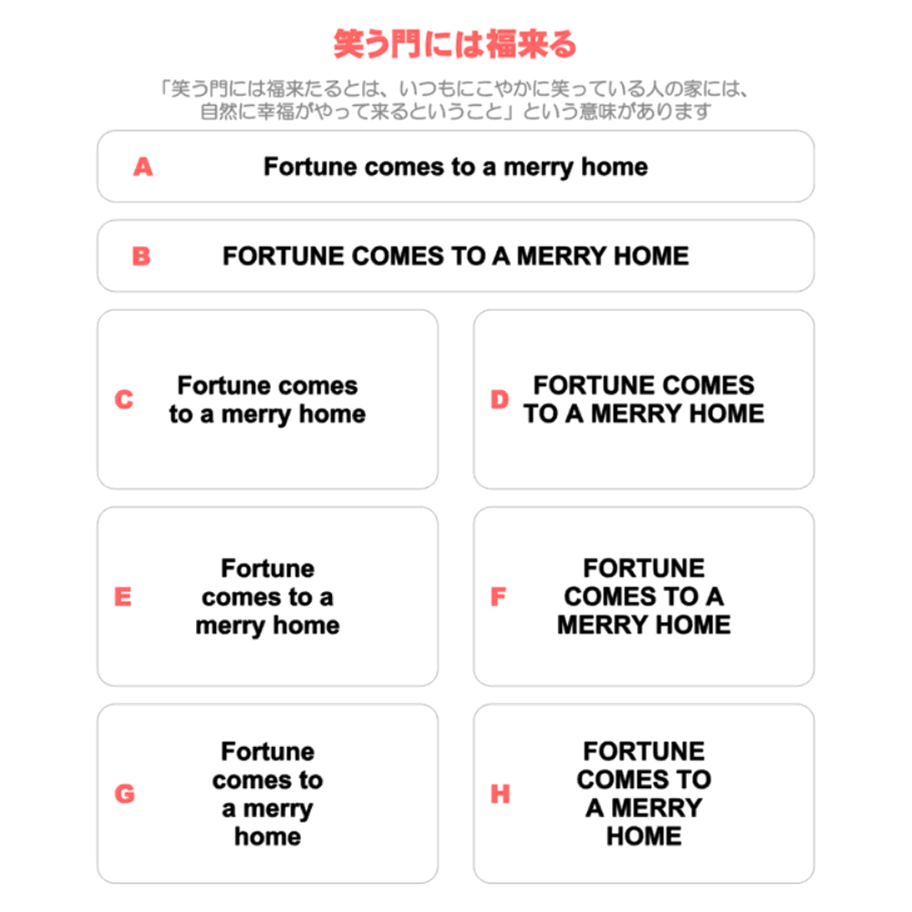 サイズ&文字が選べることわざシート☆笑う門には福来たる Fortune comes to a merry home。