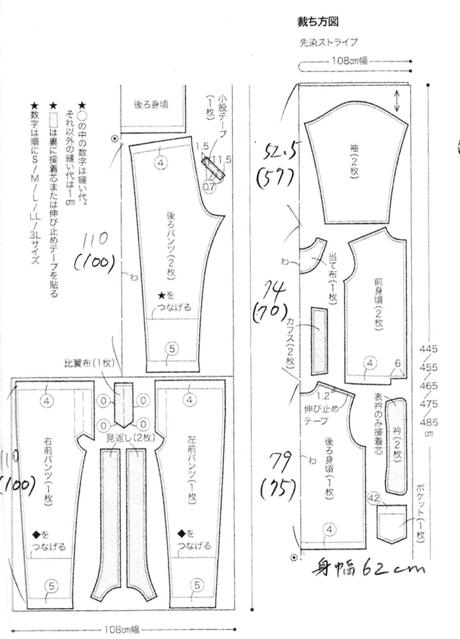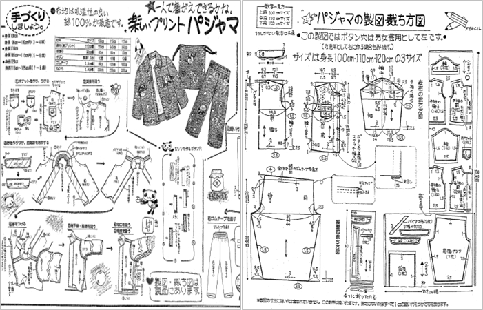 布帛地で簡単手作り!パジャマ 型紙 作り方 70-150。