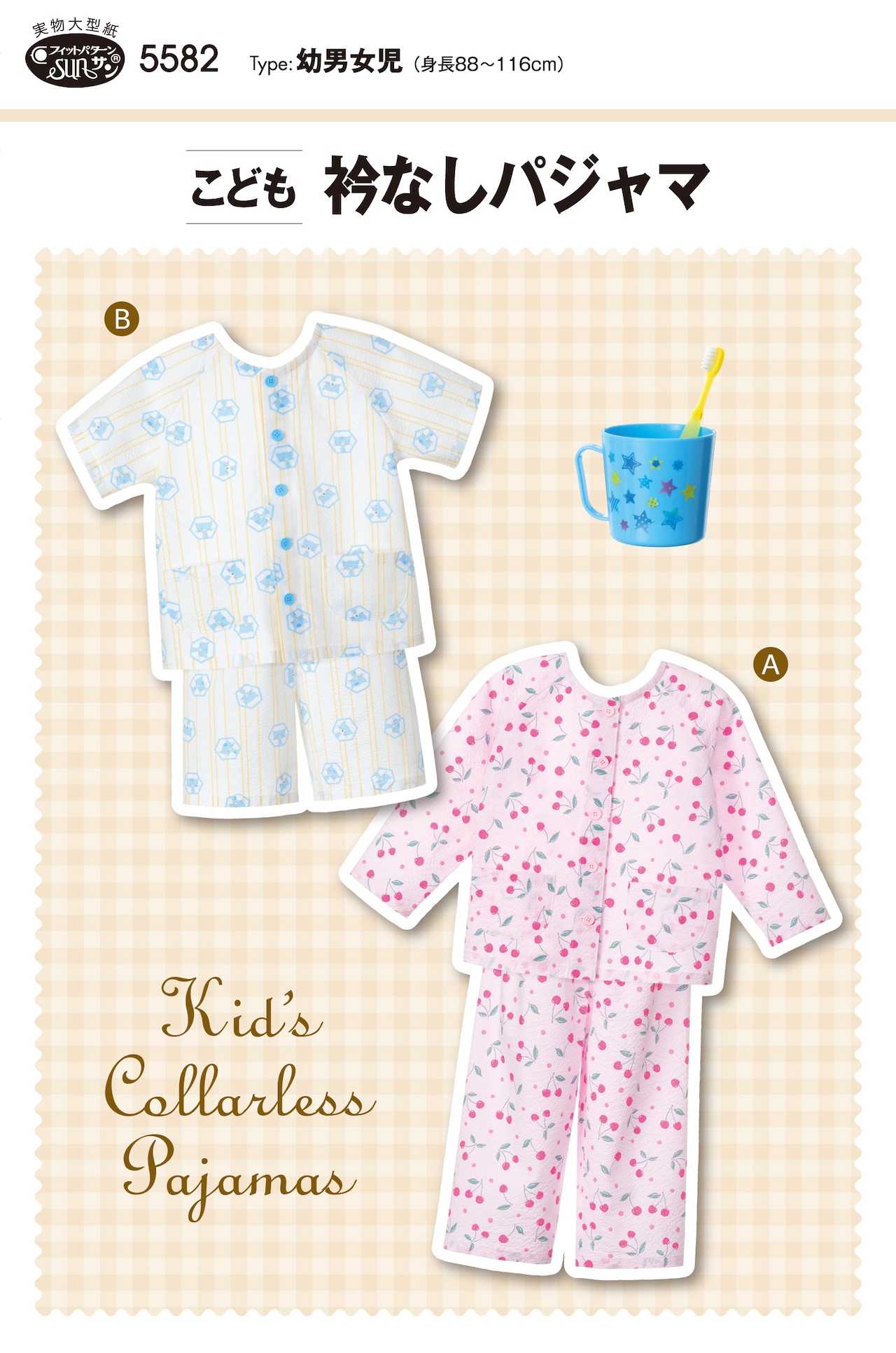 子供服型紙 こども衿なしパジャマ 5582 幼男女児 身長88〜116cmパターン 型紙 サンパターン : 生地と雑貨のお店 PERURU- 通販 - Yahoo!ショッピング。