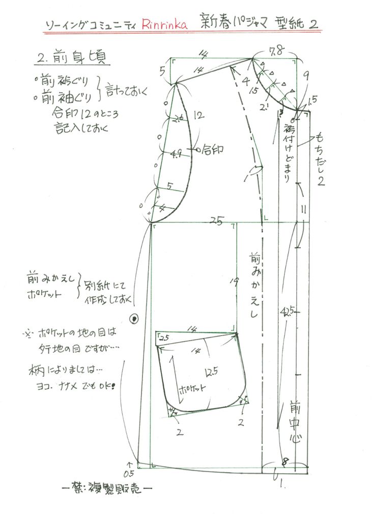 新春パジャマ縫い方②前身頃型紙作成暮らし♪英語♪楽しみながら。