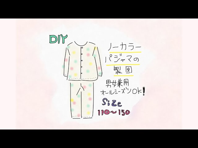 無料製図 子供のノーカラーパジャマ size110~150Drafting of Collarless Pajamas - YouTube。