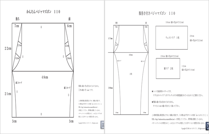 無料 型紙 ダウンロード版パジャマズボン - 子供服 型紙 販売パターンショップMahoeAnela。