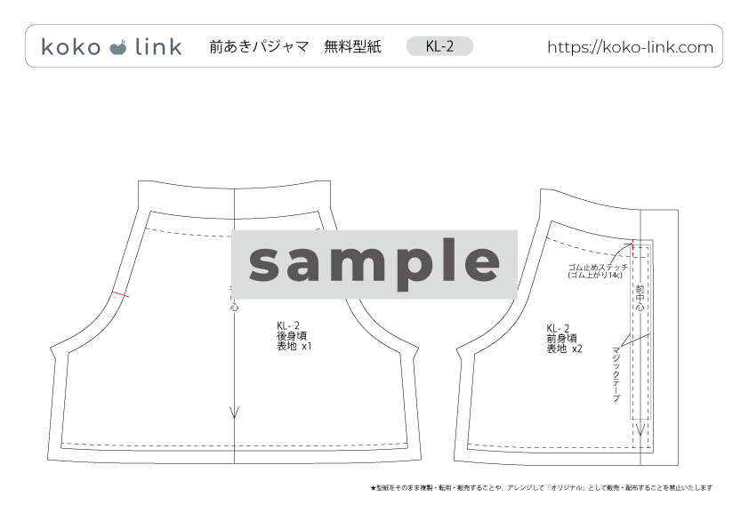 前あきパジャマ 100 A3ダウンロード343 pattern shop。