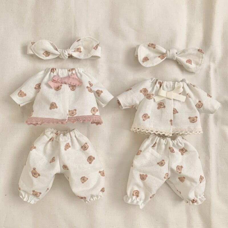 無料型紙でつくる レミン&ソランのレース付きパジャマとヘアバンド。誰でも簡単にハンドメイド。