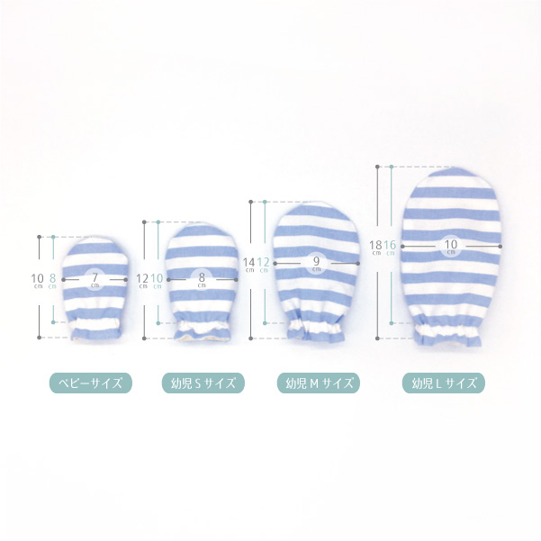 日本製 肌に優しいガーゼ素材のベビーミトン・ミトン・ベビー手袋・ガーゼ・綿100%・新生児・出産お祝い・出産準備。