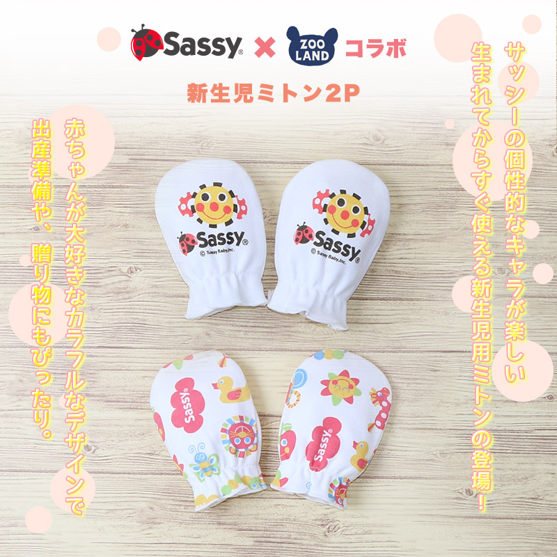 綿100% サッシー ミトン 2枚組 Sassy子供服 キッズ ベビー セット コットン 手袋 男の子 女の子 かわいい キャラクター 新生児出産準備 出産祝い 贈り物 ギフト プレゼント 赤ちゃん ベビーウェア ベビー服ポイント消化saleALLITEMS,BRAND,Sassy サッシー。