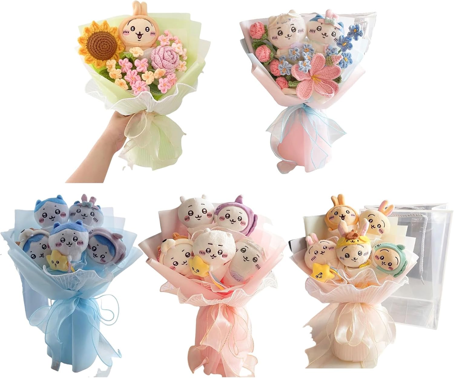 SDCADQ ちいかわ 周辺 ぬいぐるみ 花束 花を編む 手作り 造花 DIY 枯れない花 ハチワレ。