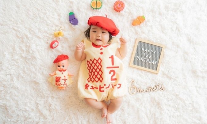 ハーフバースデー寝相アート♪キューピーハーフなど1 2記念の撮影アイデアkosodate LIFE 子育てライフ。