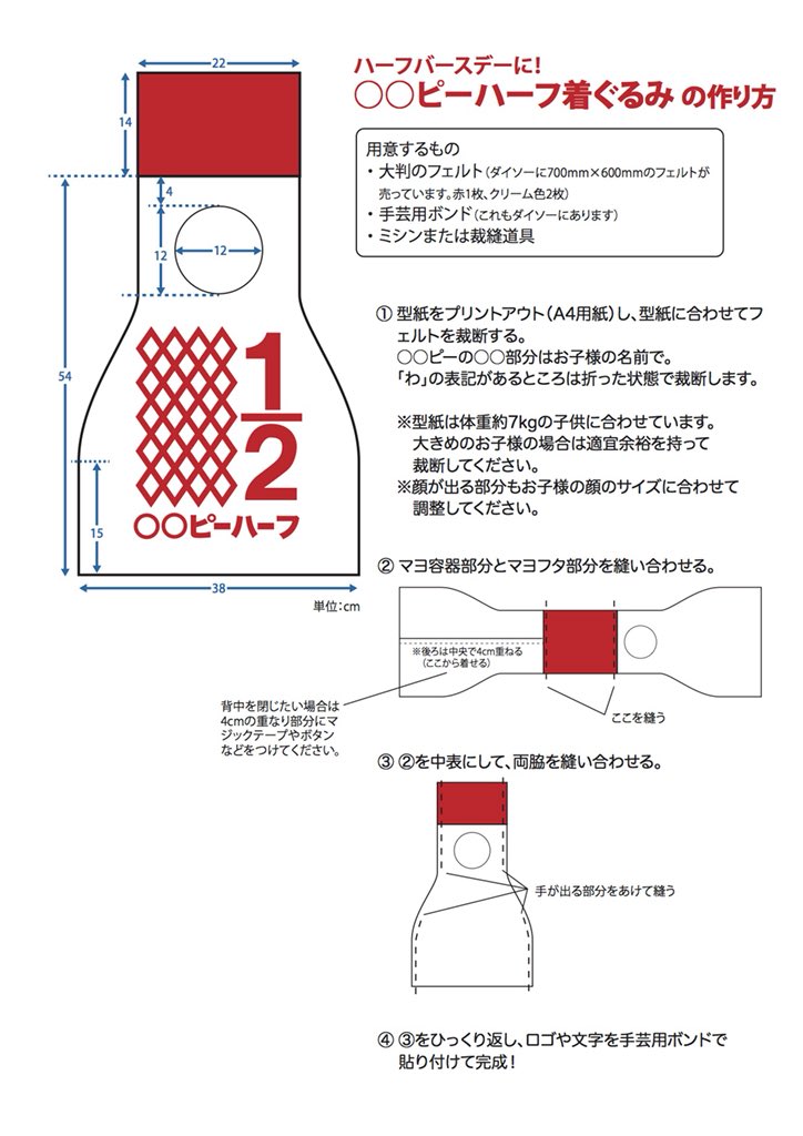 無料型紙リンク集 ハーフバースデー用のキューピーハーフ衣装の作り方。