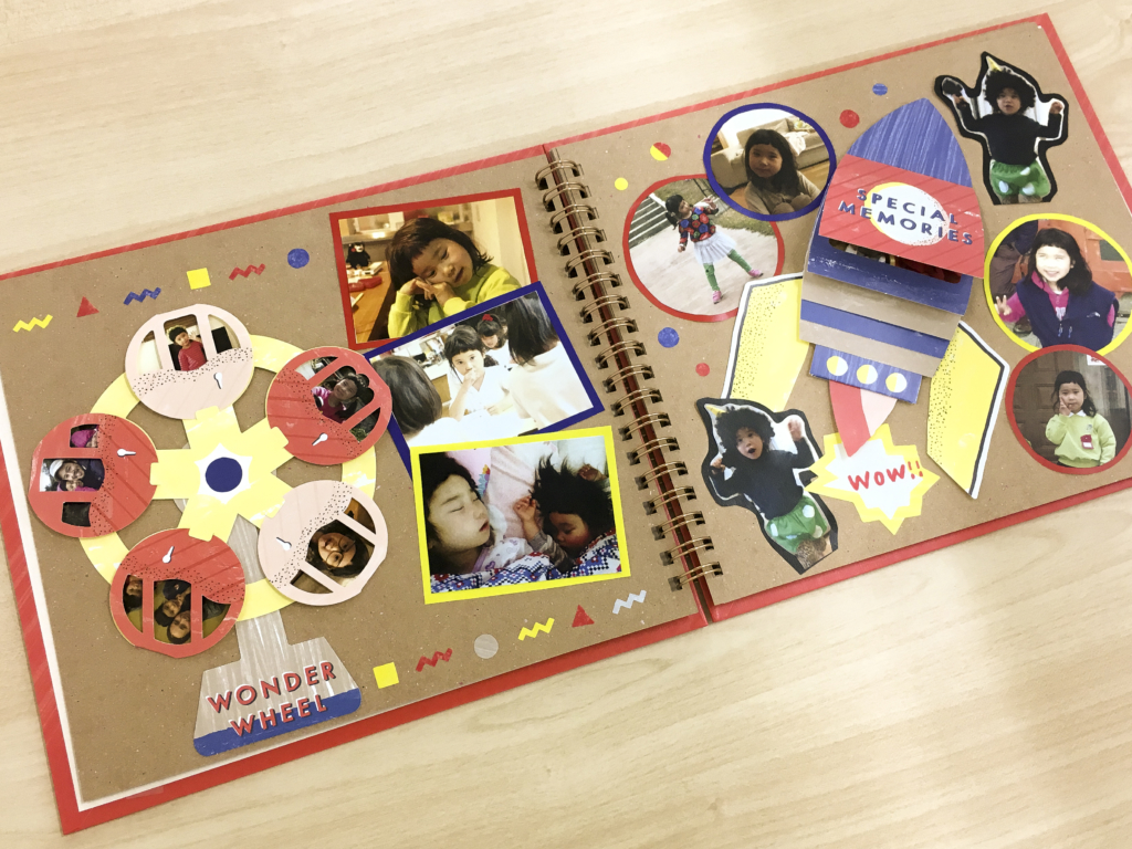 子供が喜ぶレイアウト♪愛知県大府市 家族に贈る♡手作りアルバム。スクラップブッキングdeアルバム作り。
