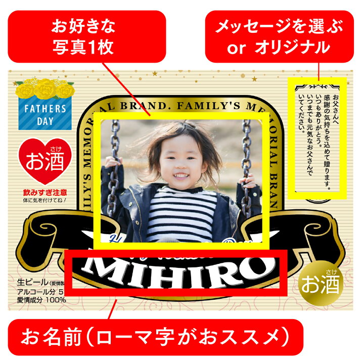楽天市場LINEで簡単! 父の日 写真入り ラベル 12枚 限定 オリジナル ビール 父の日プレゼント グッズ 2025 写真 記念品 プレゼントギフト フォト 子ども 孫 旦那 お父さん 義理父 お義父さん パパ おじいちゃん じいじ 名入れ 送料無料 : MONOLIKE。