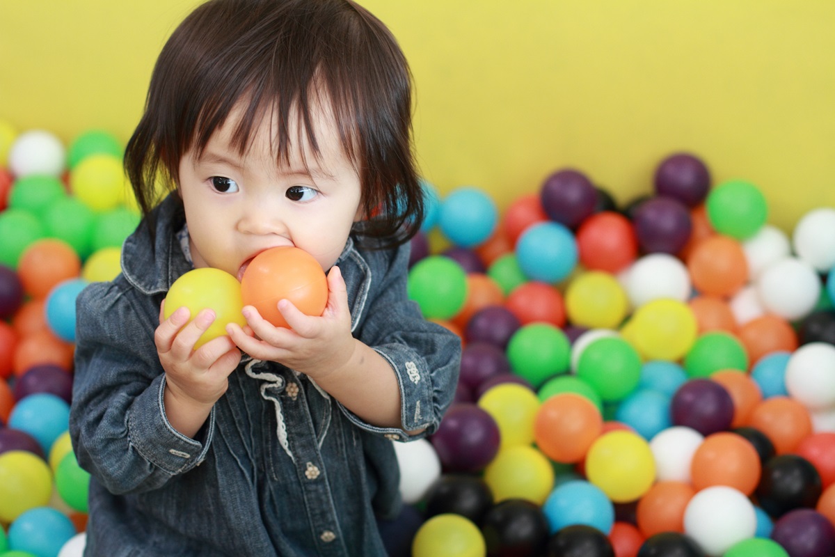 「カラーボールあそび!」 1~2歳児 たいしょうがわ遊育園 保育園・幼稚園イベント。