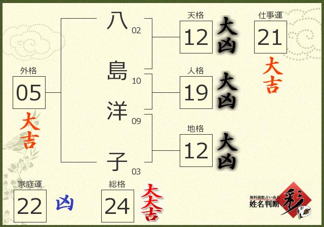 八島 洋子さんの診断結果 - 姓名判断 彩。