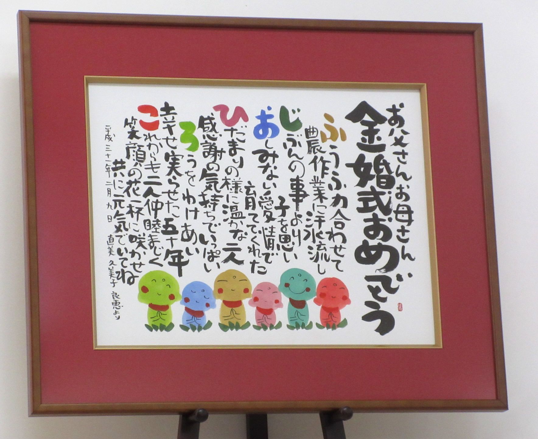 手書き オーダーメイド金婚式 おもいやりポエム 34×46cm お祝い 贈り物 プレゼント 両親 記念品 名前 ポエム 金婚式祝い 名入れメッセージ : 名前詩 おもいやり家 - 通販 - Yahoo!ショッピング。
