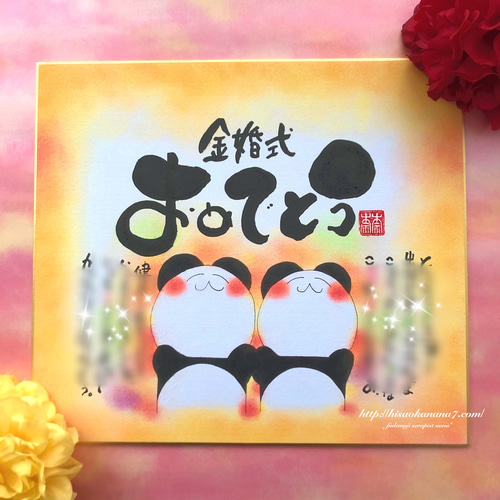金婚式 銀婚式などに パンダ2匹2人の名前で作成 パンダのお名前入りポエム色紙サイズ☆結婚記念日のお祝いにオススメ♪ 書道 筆文字アートnana*通販 8726202Creema クリーマ。