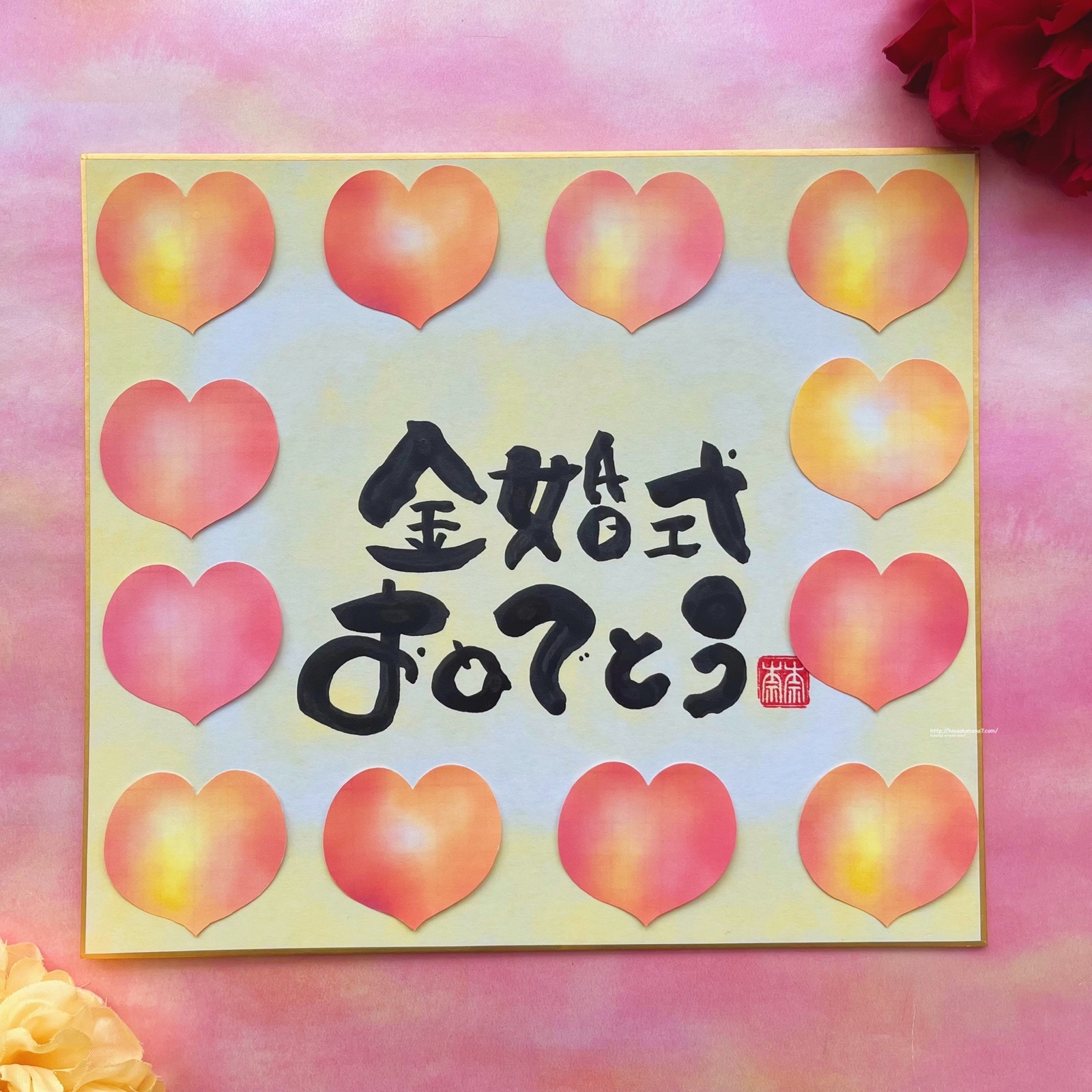 寄せ書き色紙 金婚式 銀婚式などのお祝いに 言葉、背景色 変更可能!写真を貼るスペースを空けて作成も可能です♪ - Fudemoji artnana*minne byGMOペパボ 国内最大級のハンドメイド・手作り通販サイト。