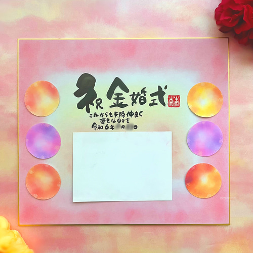 寄せ書き色紙 金婚式 銀婚式などのお祝いに 言葉、背景色 変更可能!写真を貼るスペースを空けて作成も可能です♪ 書道 筆文字アートnana* 通販15723475Creema クリーマ。