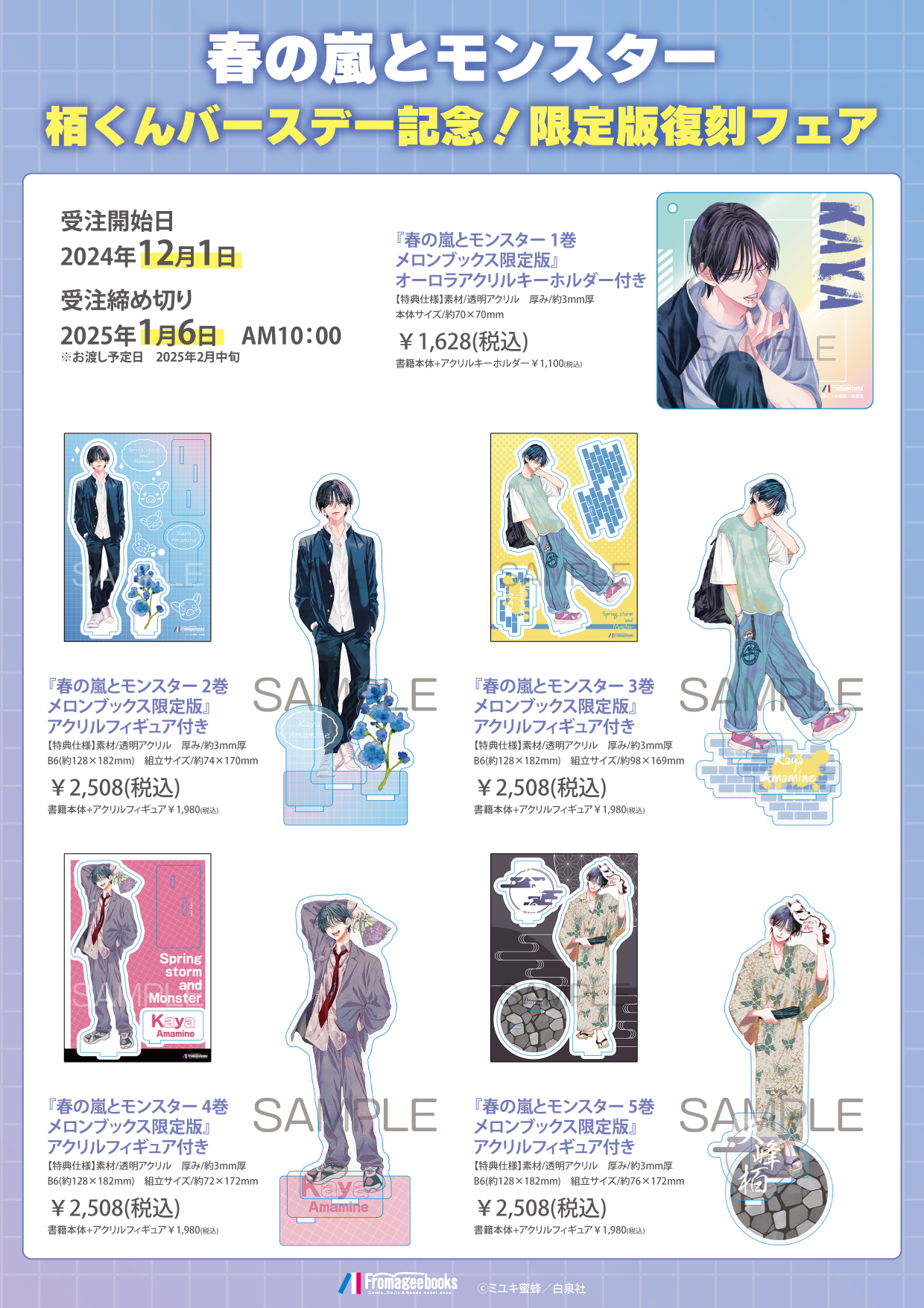 フロマージュブックス@コミック&ノベル速報 on X: "**** ハッピーバースディ栢くん🎂 **** 12月の栢くん誕生日を目前にして・ なんと・『春の嵐とモンスター 』1~5巻の有償特典を復刻しちゃいます✨ 是非。