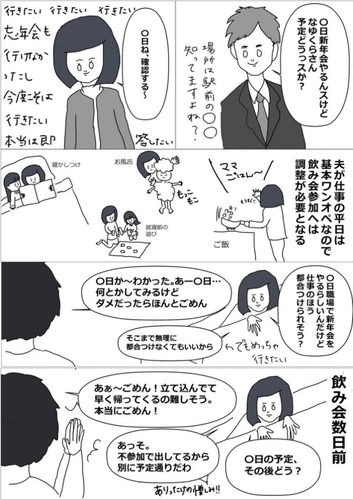 忘年会シーズン! 夫が飲み会に行っても妻が不機嫌にならずに済む方法とは? コソダテフルな毎日 第51話 ウーマンエキサイト。