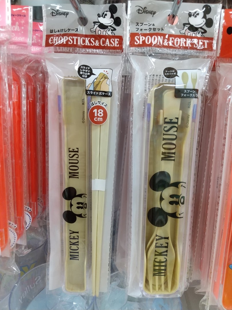セリア レトロミッキースプーン&フォーク&ケース&はし4点セット。