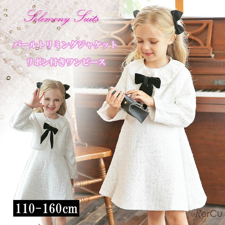 楽天市場 入学式 子供服 女 女の子 120 130 110 スーツ 卒園式 小学校 おしゃれ 年長 新一年生 アイボリー 黒 制服 長袖 受験 面接フォーマル ツイード : リエスト楽天市場店。