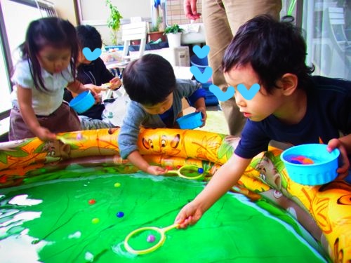すてきな花をさかせましょう:今日のふたば組さん お誕生日会 魚釣りゲーム。