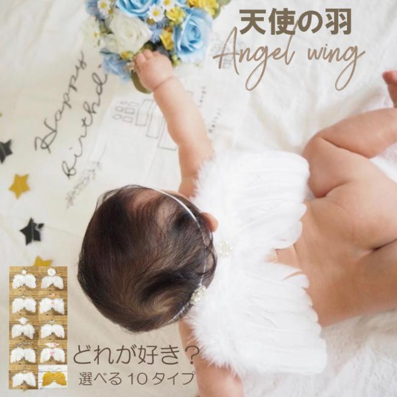 ニューボーンフォト 天使の羽 リーフバンド 赤ちゃん コスプレ ベビー 記念写真 - メルカリ。